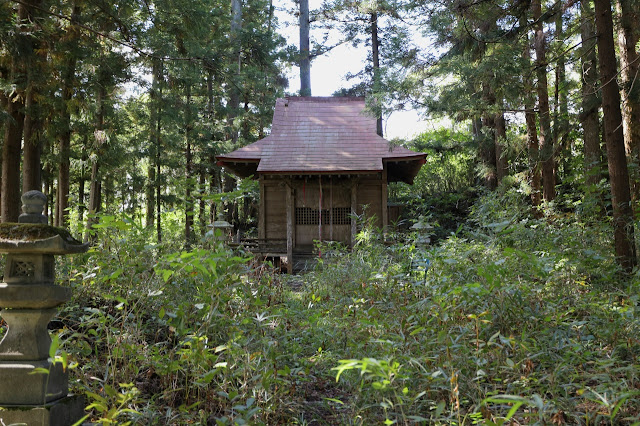 社殿は、生い茂った草むらの奥に垣間見られます。
